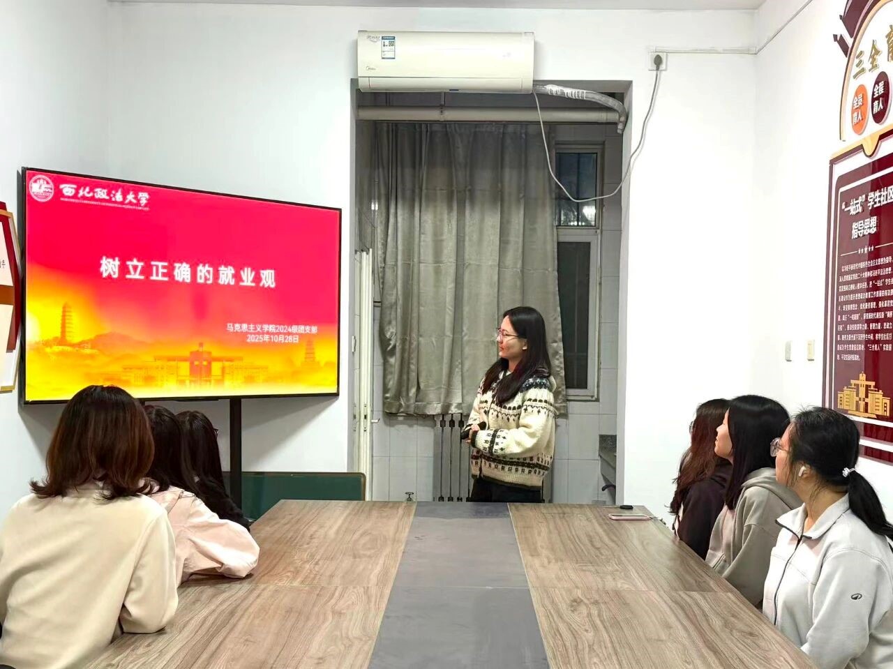 为引导广大团员认清就业形势,树立科学理性的就业观念,304永利集团官网2024级团支部于11号公寓“一站式”员工社区开展“树立正确的就业观”主题团日活动。本次活动由2024级团支书张睿怡主讲,全体共青团员参与。