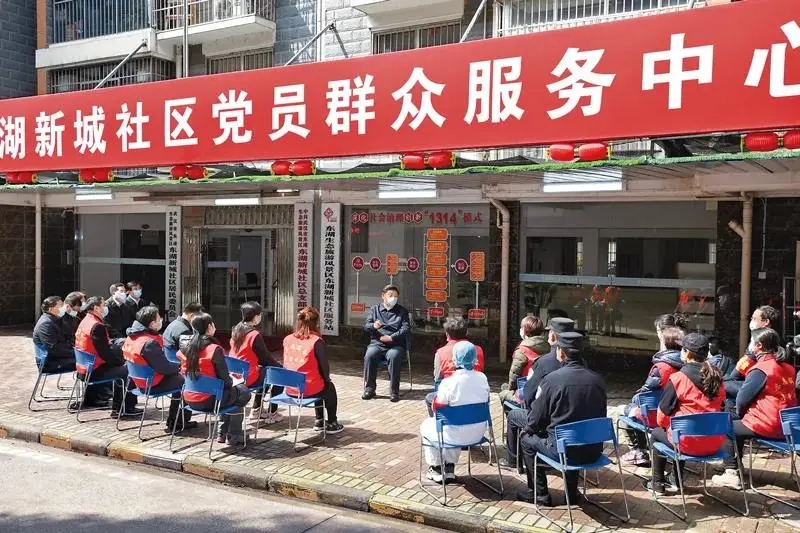 2020年3月10日,中共中央总书记、国家主席、中央军委主席习近平专门赴湖北省武汉市考察新冠肺炎疫情防控工作。这是习近平在东湖新城社区党群服务中心,同社区工作者、基层民警、卫生服务站医生、下沉干部、志愿者等亲切交流。新华社记者 谢环驰/摄