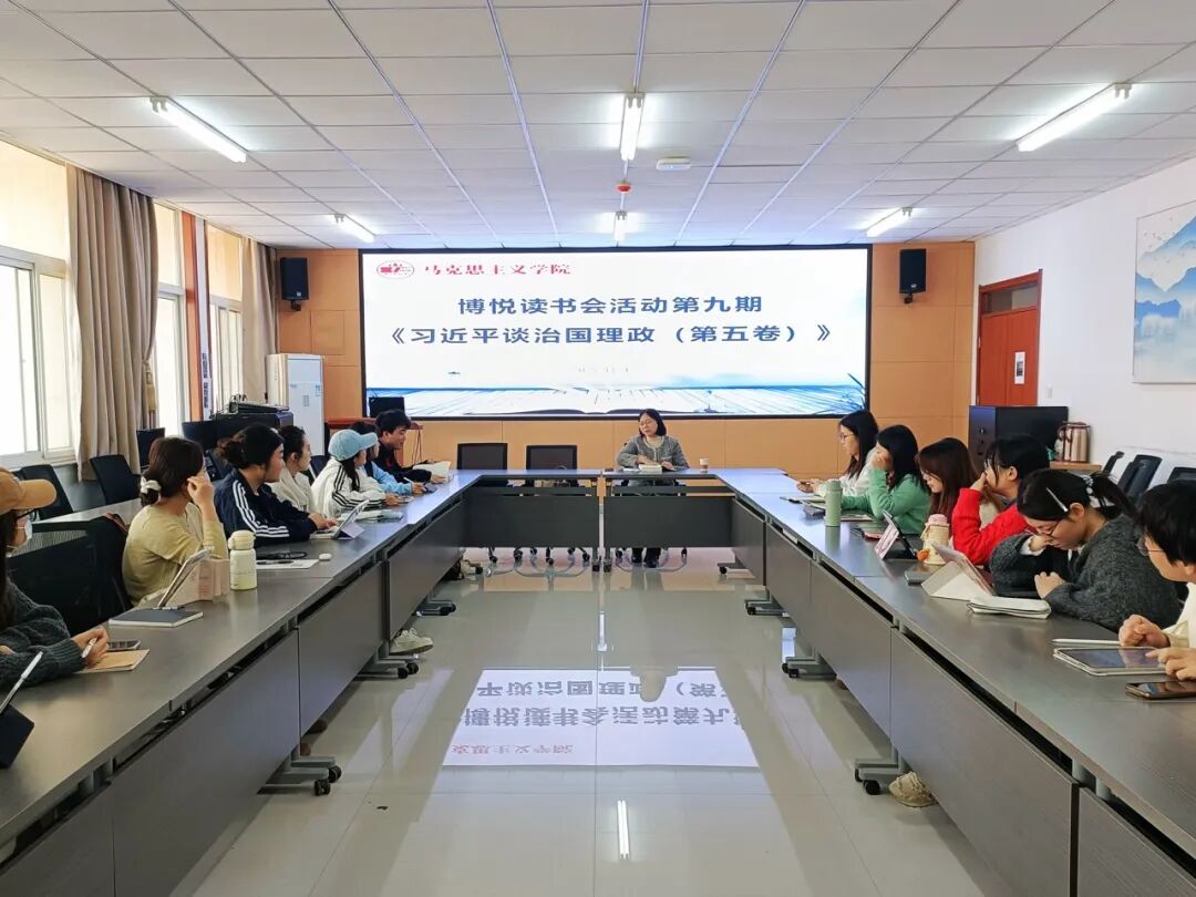 为提升研究生阅读能力与理论素养,11月4日,公司思想政治教育专业博悦读书会第九期在诚意楼五楼会议室举行,师生展开对《习近平谈治国理政》第五卷的研读、学习与交流。活动由高静副教授主持,公司2024级、2025级思想政治教育专业研究生参加。
