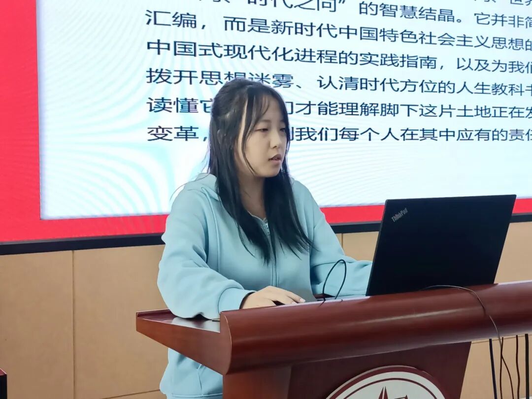 读书会伊始,高静领学了《习近平谈治国理政》第五卷的总体结构、主题主线和内容要义。在学习交流阶段,2024级研究生兰书田以“深学细悟《习近平谈治国理政》第五卷”为题,系统阐述了《习近平谈治国理政》第五卷的主要内容与理论价值。2025级研究生张静雯以“时代思想与青年责任”为题,分享了学习体会与思考感悟。